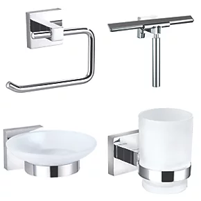 High quality, long-lasting 4 piece set. Chrome-plated brass construction. Supplied with fixing kit.