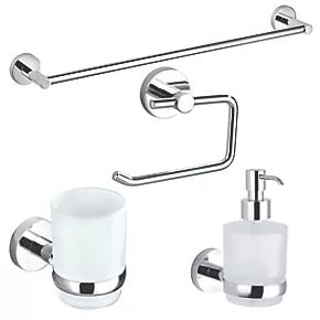 High quality, long-lasting 4 piece set. Chrome-plated brass construction. Supplied with fixing kit.
