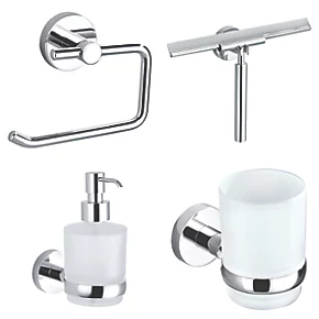High quality, long-lasting 4 piece set. Chrome-plated brass construction. Supplied with fixing kit.