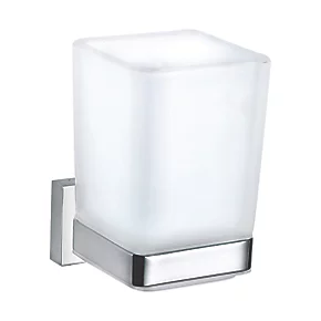 High quality, long-lasting holder constructed from brass with chrome-plated finish. Glass tumbler included.