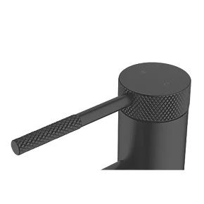 Black mono basin mixer tap with solid brass body. Black-coated brass clicker waste included.